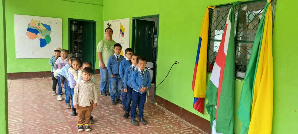 - Hitos de consolidación y participación comunitaria (1990–1993) Desde muy pronto la escuela mostró la fuerza de la articulación entre autoridades y familias. Días después de su apertura, y con la colaboración del alcalde Dr. Joaquín Páez Castellanos, se construyó la cancha deportiva y se adquirieron tableros y materiales para la actividad física y lúdica. La comunidad organizó un bazar para recaudar fondos, actividad que incluyó un reinado relámpago. Iniciativas como esta evidencian el compromiso activo de las familias con las necesidades escolares. En marzo de 1992 se construyó la cocina escolar gracias al apoyo del alcalde Jorge Enrique Russi Peñarete y la colaboración entusiasta de los padres de familia.
